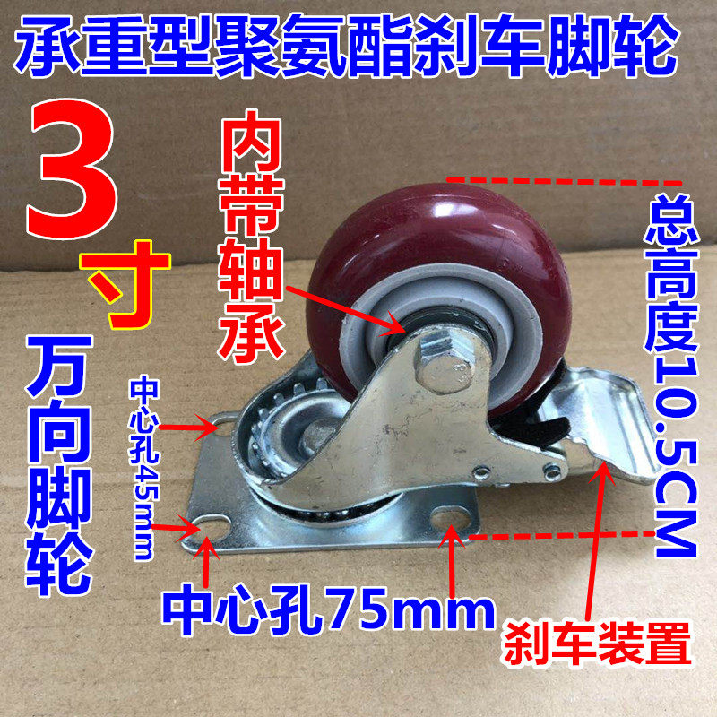 Without brakes, ordinary casters with brakes, ordinary casters, load-bearing type, red, non-brake, universal casters, load-bearing, red, non-brake, universal casters, 4-inch load-bearing red