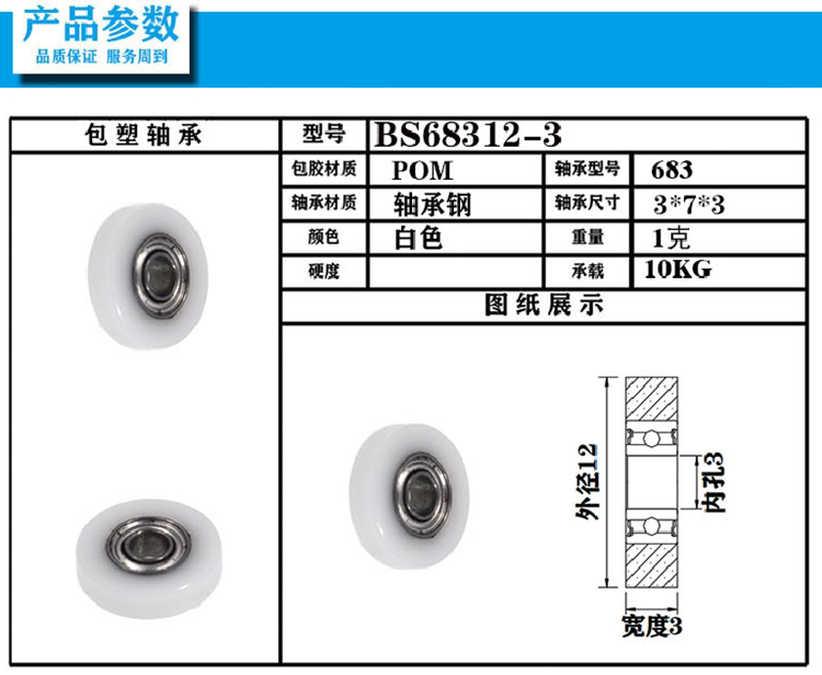 Manufacturers direct sales Messe Messe micro packaging bearing pulley POM plastic nylon roller BS68312-3