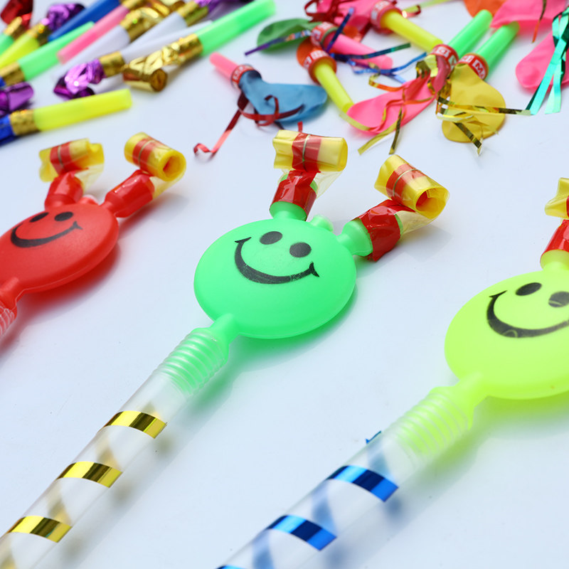 Trumpet blowing dragon 10 only (color random) whistle balloon 1 only (color random) smiley face blown dragon 4 (color random) small number smiley face blown dragon 5 (color random) green car whistleblowing red car whistling powder