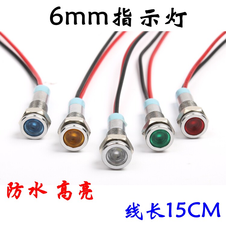 6MM metal indicator light with line signal LED power light car 3V6V12V24V220V computer modified waterproof