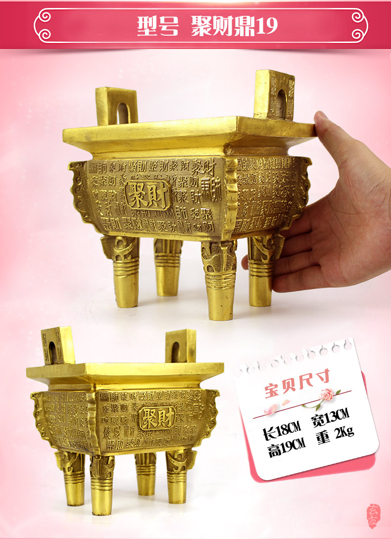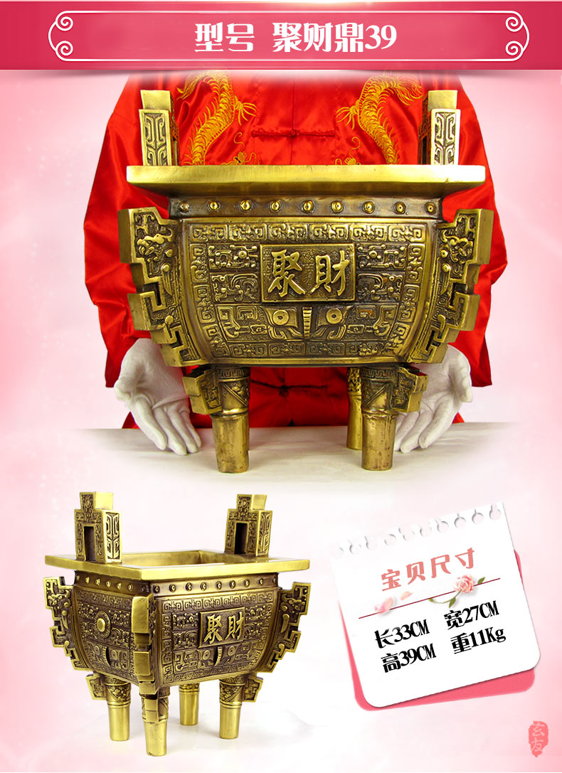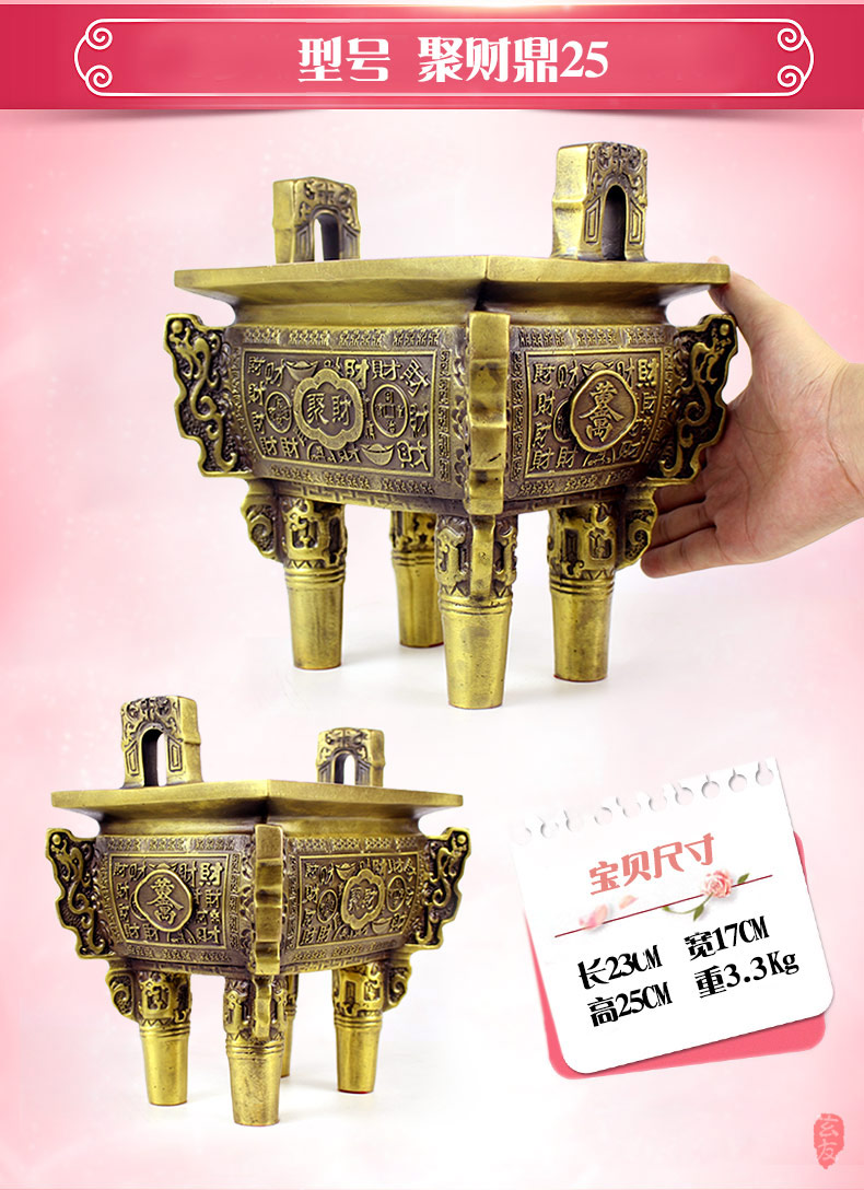 Xuanyou Tongding Decoration Company Jucai Pure Copper Fangding Craft Gift Decoration Small Ding Cent Burner Metal Office Decoration