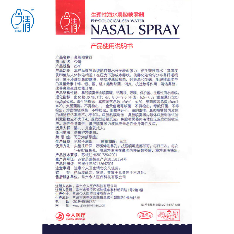 Jinqing physiological seawater nasal spray isotonic nasal wash water children's nose wash sea salt humidification Jinning