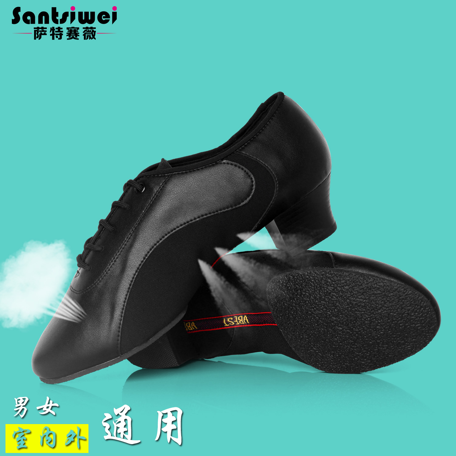 Latin Dance Shoes Men's Bull Leather Soft Bottom Men's Men's Professional Black Practicing Dance Shoes Men's Shoes Men's Summer