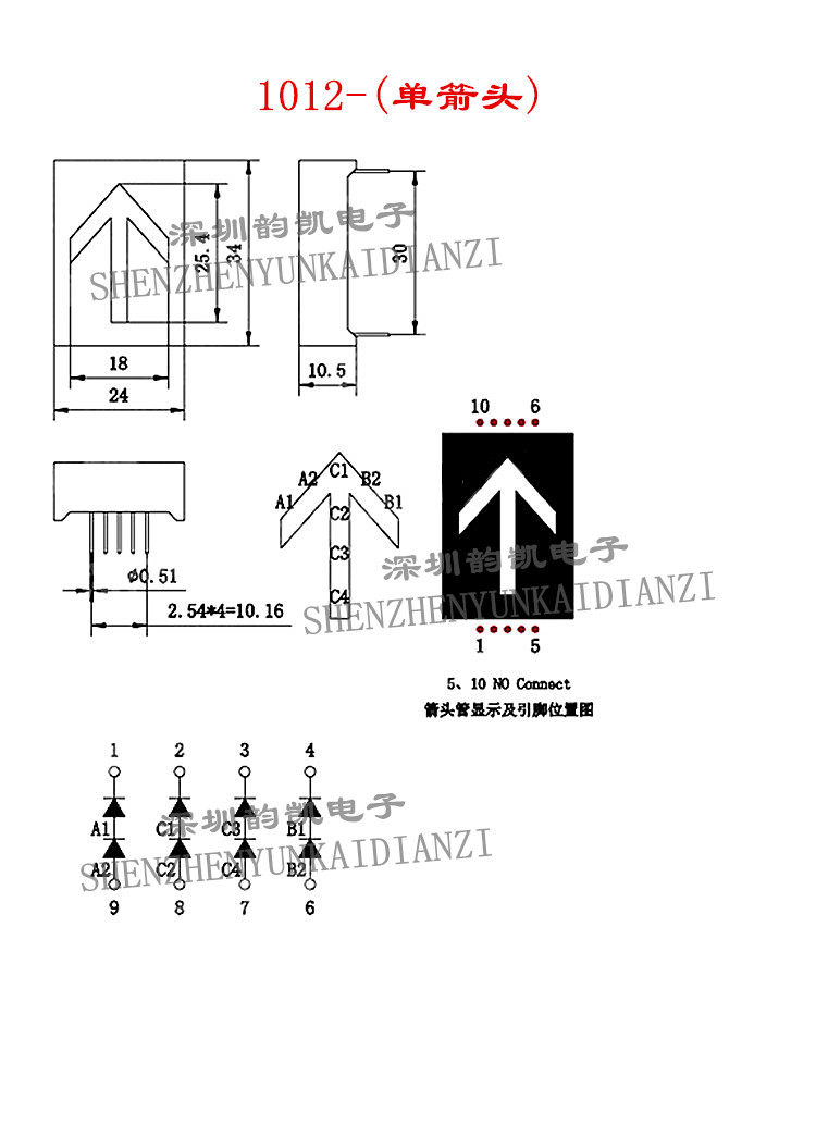 1-inch red light single-arrow led digital arrow tube KYX-1012R 1 inch arrow 24 * 34 Arrow tube