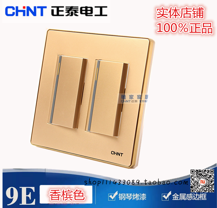 Positive Thai Switch Socket NEW9E Wall Switch Artist Series Champagne Gold 120 * 120 Two opening double cut switch