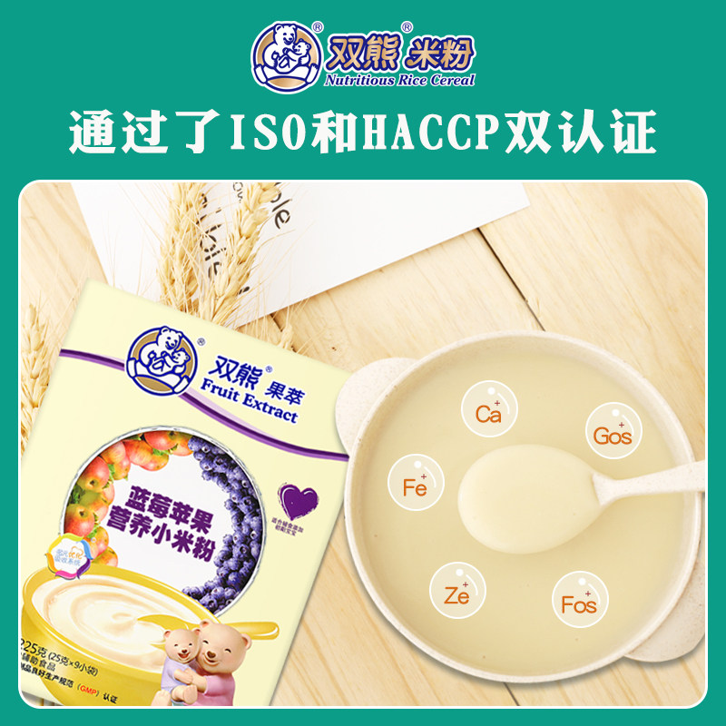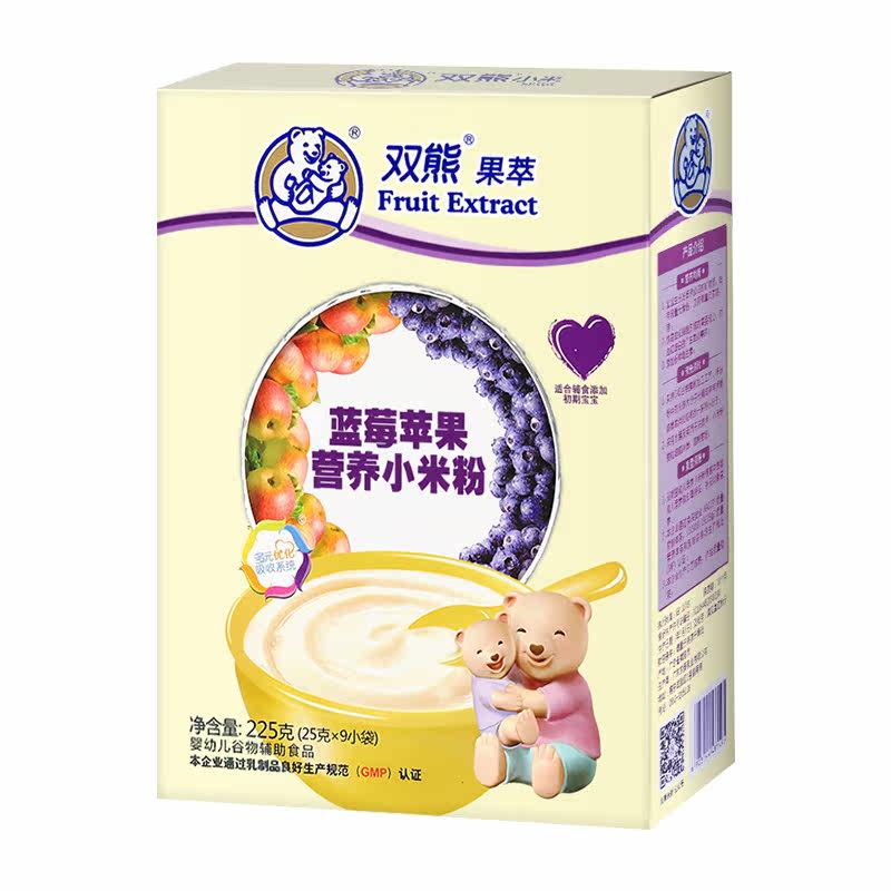 Double Bear Fruit Extracts Blueberry Apple Low Sensitive Small Rice Flour Infants High-speed Rail Nutrition Rice Burnt Early 6 Months Boxed 225 gr