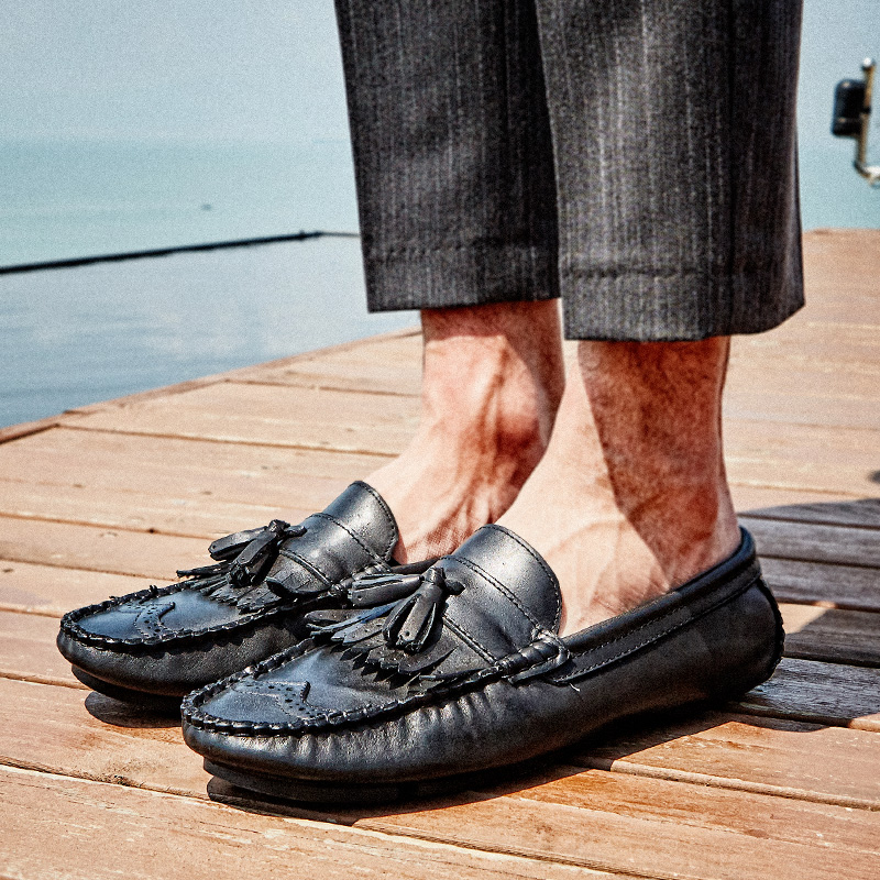 Spring One foot pedal Social people Bean Bean Shoes Man Genuine Leather Han Edition Trend Casual Leather Shoes Sloth Lefu Shoes Men's Shoes