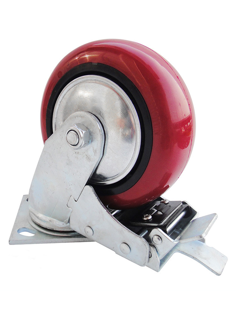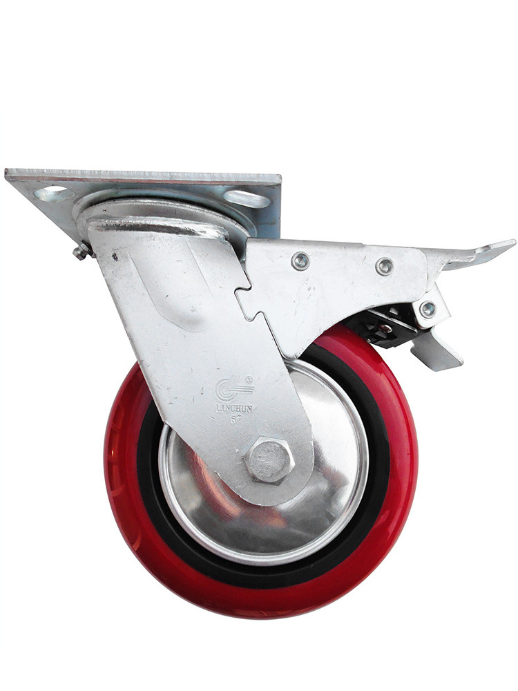 Heavy-duty one-piece bearing arc plastic core PU 6 inch full brake wheel
