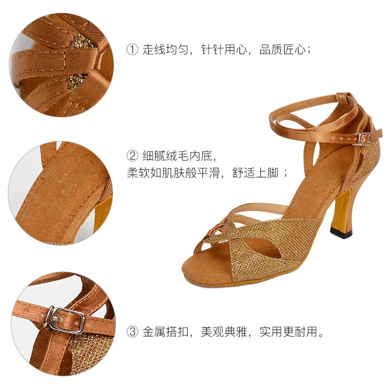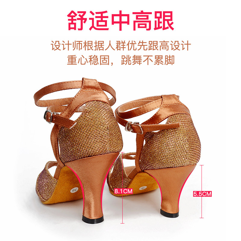 Dance shoes, high heels, soft bottom, satin latin dance shoes, factory square dance shoes, women's new three-step female dance shoes