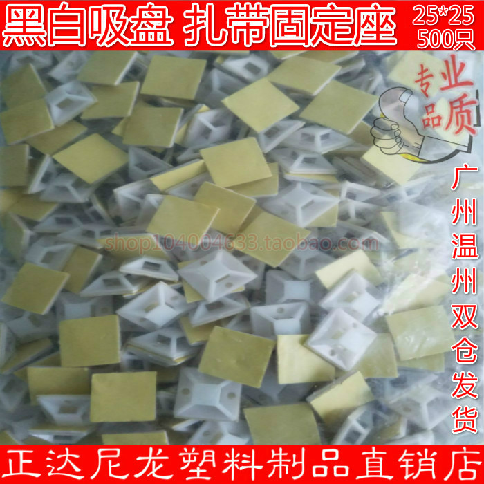 Self-adhesive black suction cup 25*25 500 self-adhesive nylon cable tie holder positioning piece in white