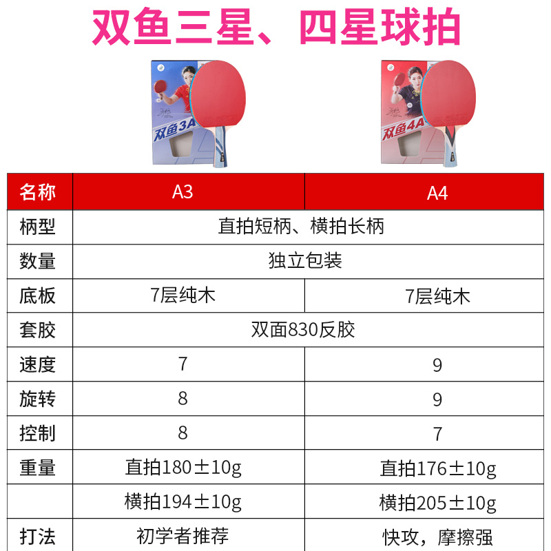 Pisces table tennis racket for beginners Samsung 3 stars Children table tennis four stars 4 stars Bing Bing racket for students Single and double racket