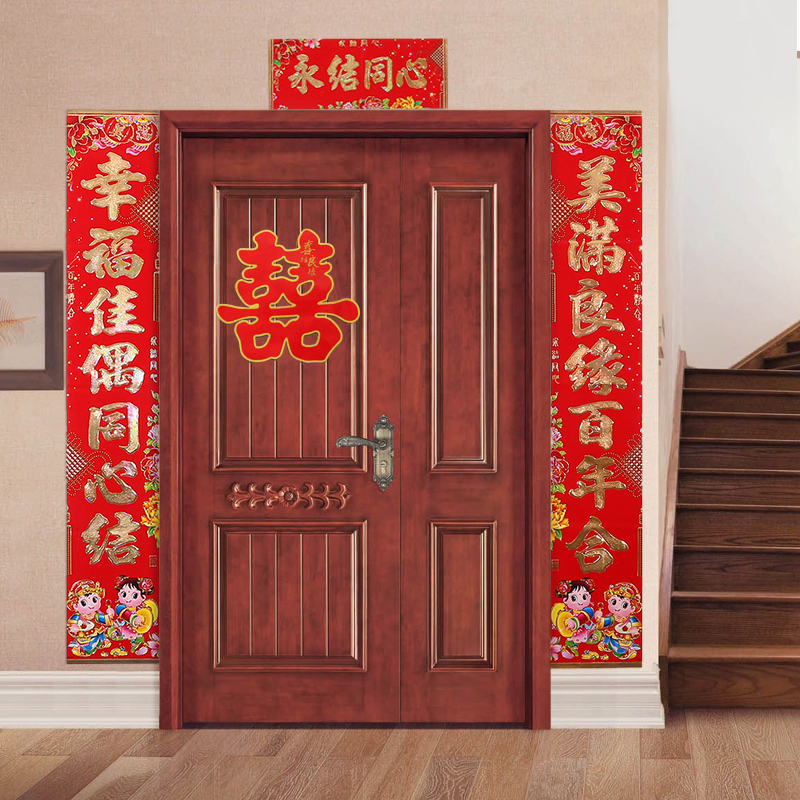 Wedding Wedding Supplies Happy Couplets Paper Reliefs Hot Gold Powder Couplets Wedding Festive Couplets to Wedding House Doors-Taobao