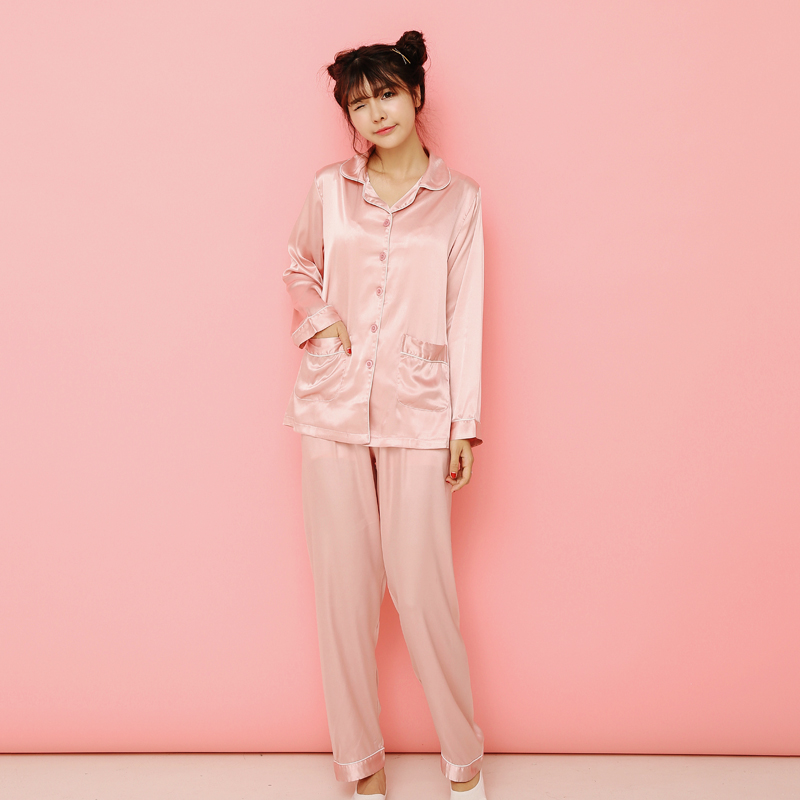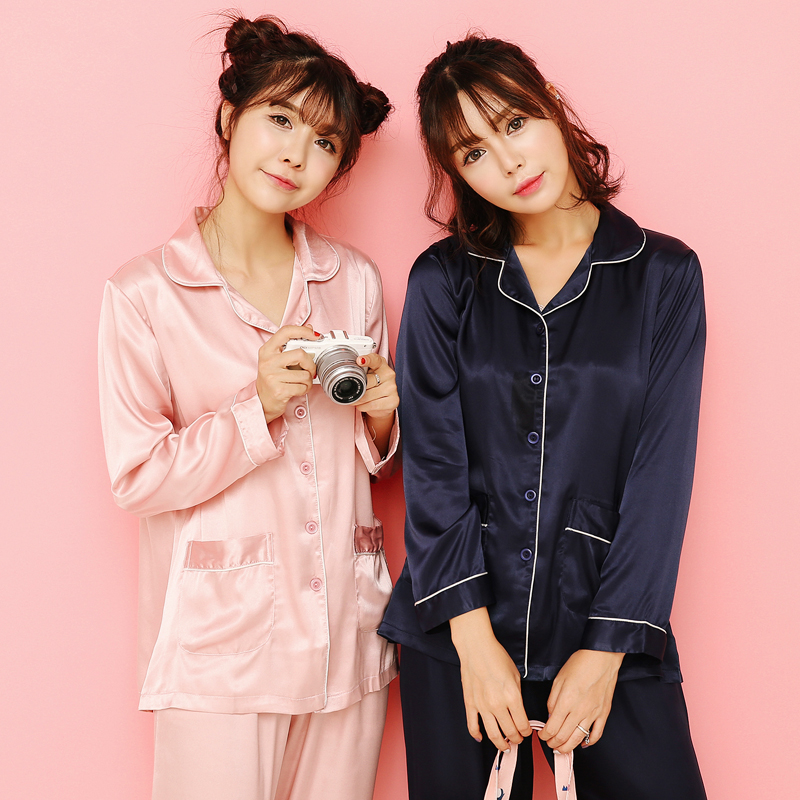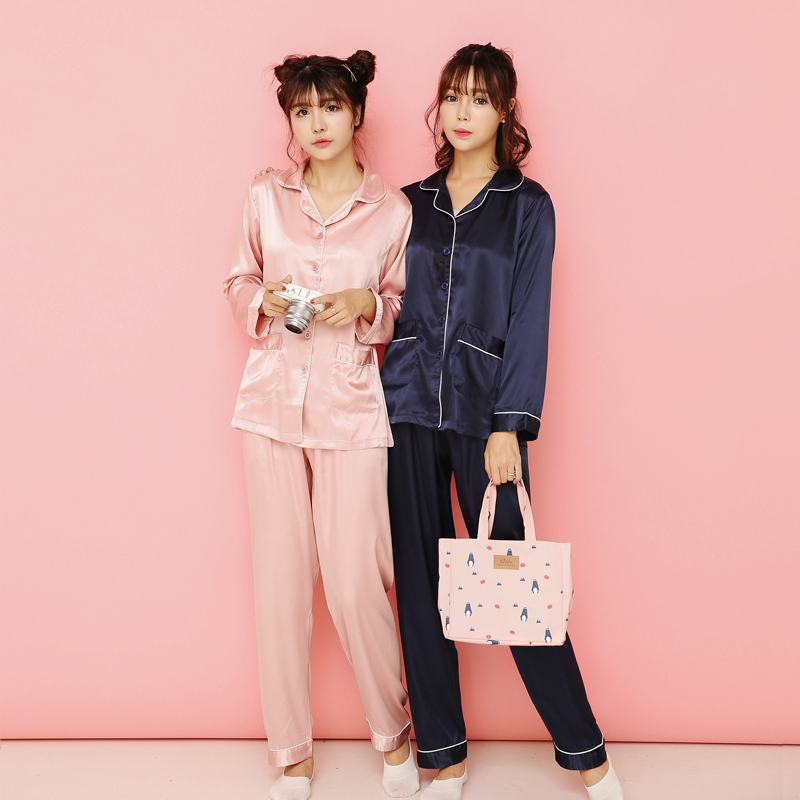 South Korean fall silk pyjamas woman long sleeve suit thin Korean version of spring and autumn sweet and cute big size and ice silk two sets