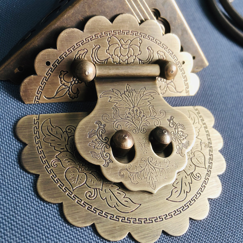Camphor wood box hardware accessories Chinese antique pure copper hinge jewelry box old-fashioned wooden box lock pure copper handle