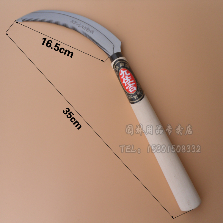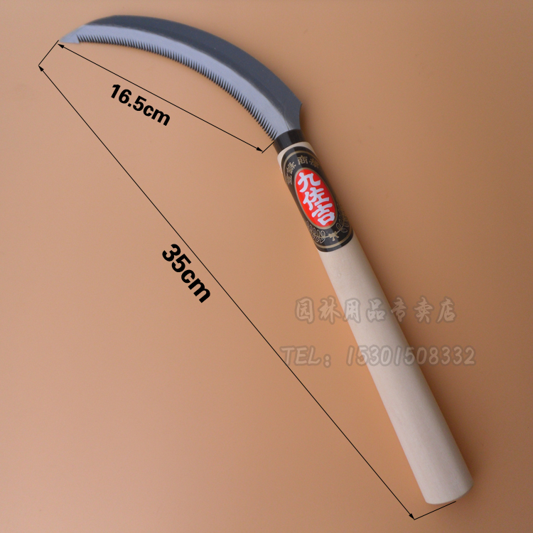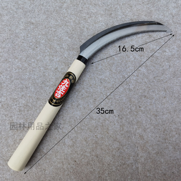 Jiuzuoji long saw sickle weeding sickle all-steel stainless steel wooden handle small sickle with sawtooth lawn mower pick grass knife farm tool