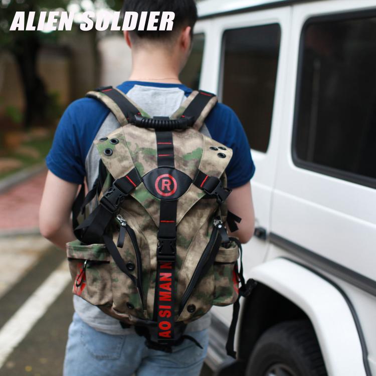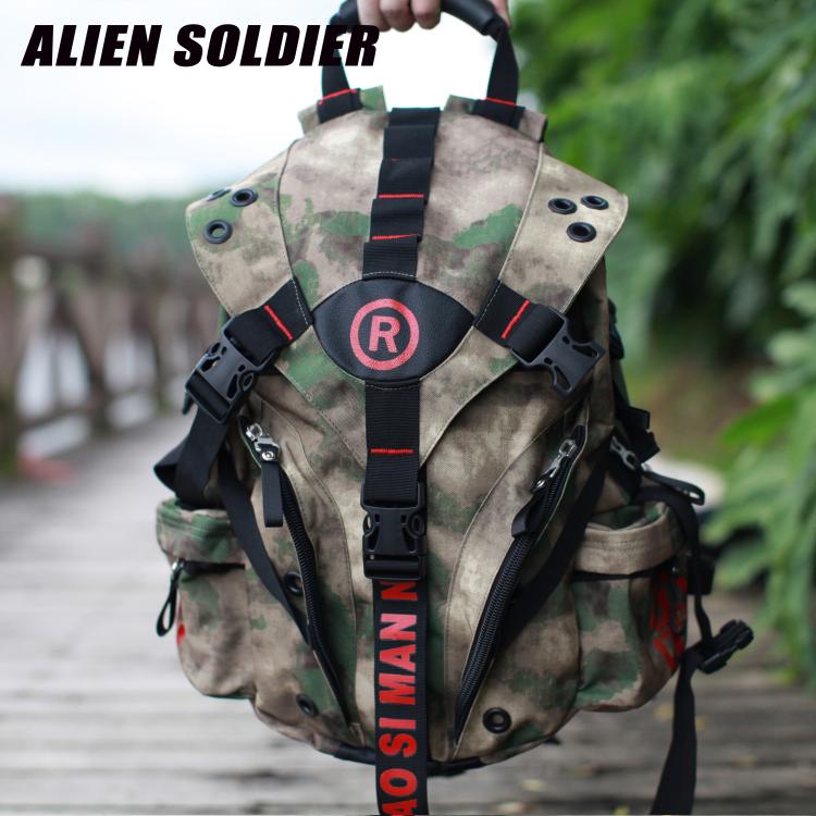 Xenomorph Multifunction Eat Chicken Camouflage Touring Locomotive Helmet Backpack Military Fan Tactical Outdoor Pack Men's and Women's Backpack