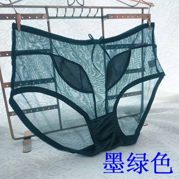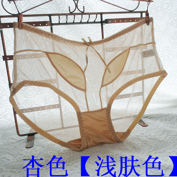 Mid-waist transparent all-permeable mesh personality panties women's hot temptation character bag hip ultra-thin lace quick-drying