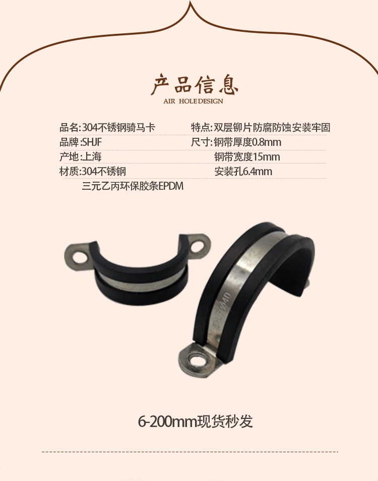 304 stainless steel adhesive adhesive strip riding card pipe hoop hoop U type card throat hoop fixing hoop shock absorbing hoop 6-200