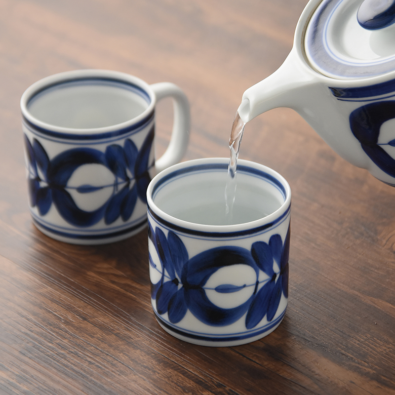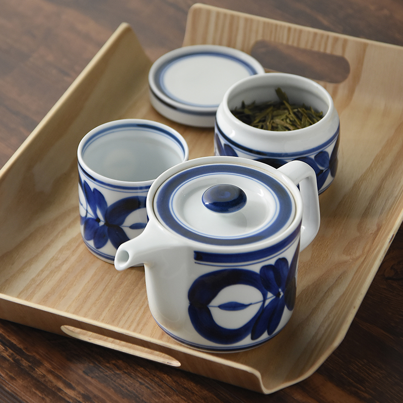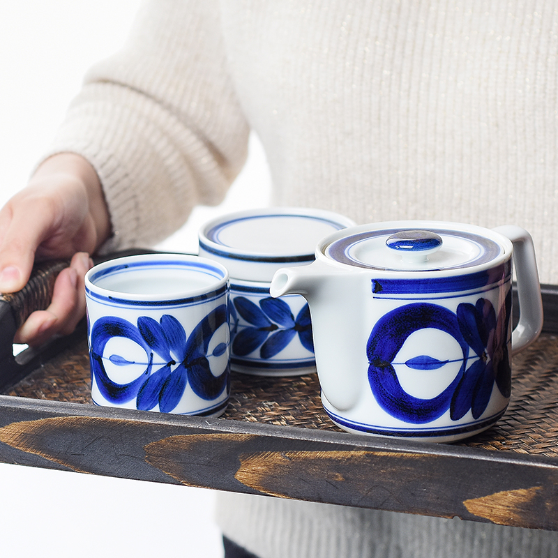 Pozzo See Japanese import of ceramic glazed handpainted and winfu tea with blue sea grass teapot tea cup