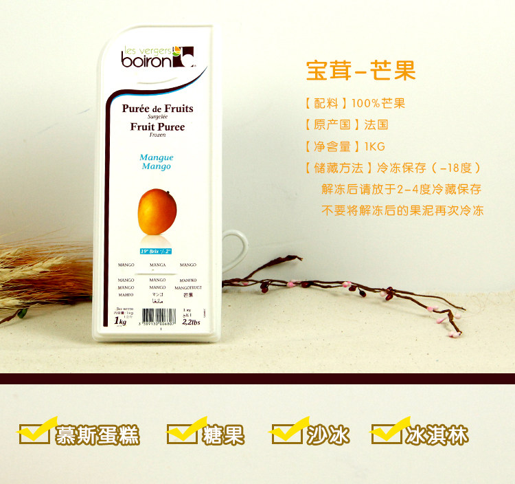 French Boiron Baorong fruit puree mango strawberry raspberry raspberry lychee coconut white peach pineapple puree 1kg