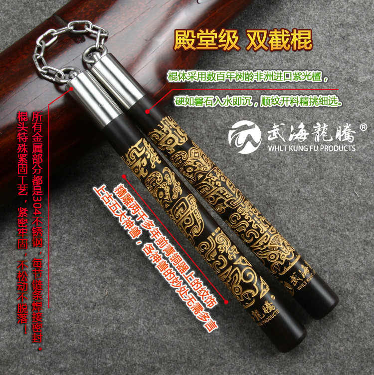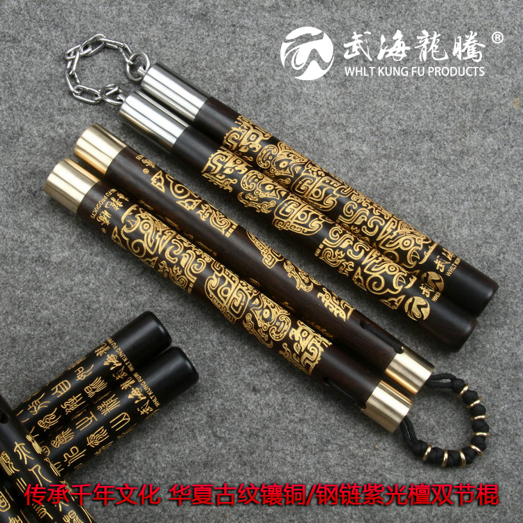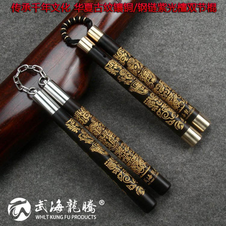 Wu Hailong Teng engraving Hua Xia Guven Purple Light Sandalwood Solid Wood Double-section sticks black sandalwood with two sticks of two-section sticks
