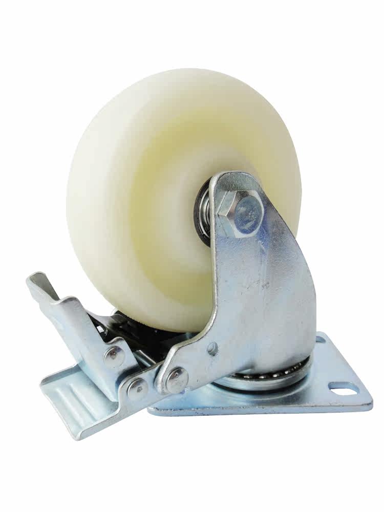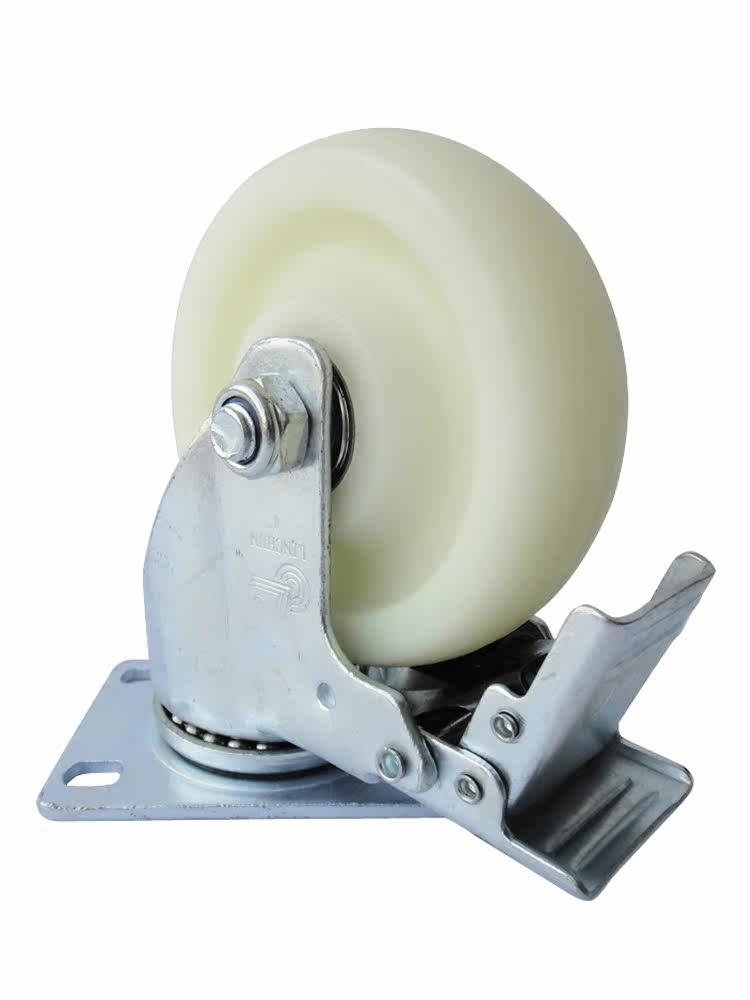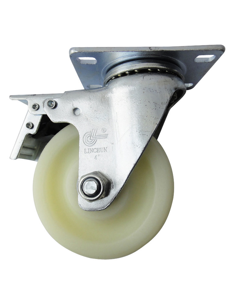 Shanghai Linchun caster medium-sized white nylon turn universal reel load 140kgMC wheel 4 inch full brake wheel