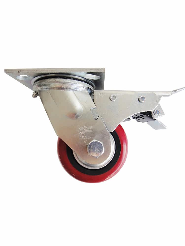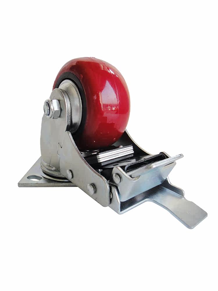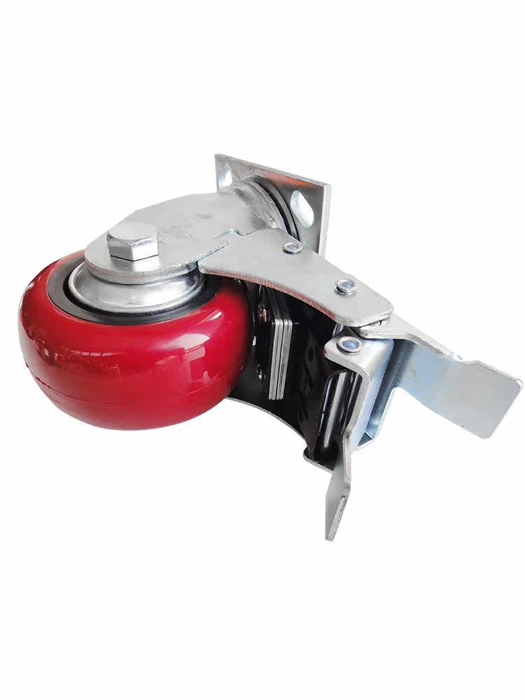 Heavy-duty one-piece bearing arc plastic core PU4 inch full brake wheel