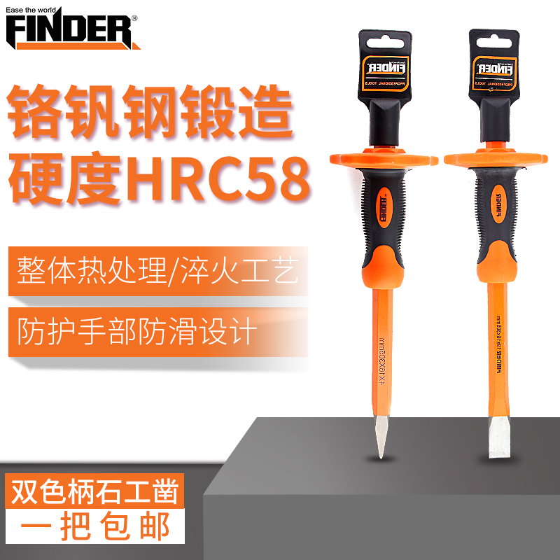 Discoverer masonry chisel Pointed cement wall chisel Flat head punch hand guard Alloy chisel Manual stonemason crack stone tool