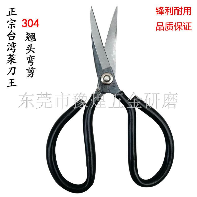 Factory direct kitchen knife king 304L tilted head curved scissors No 4 carbon steel straight scissors repair rubber shoe material big bottom edge