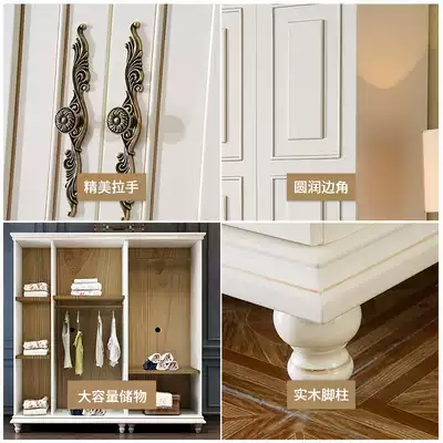 American wardrobe bedroom White 2 door wardrobe solid wood foot European style whole four door wardrobe children's cabinet storage cabinet