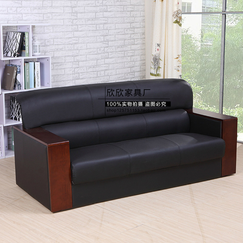 Office sofa and tea table combination simple reception business reception solid wood leather leather leather three-seat sofa