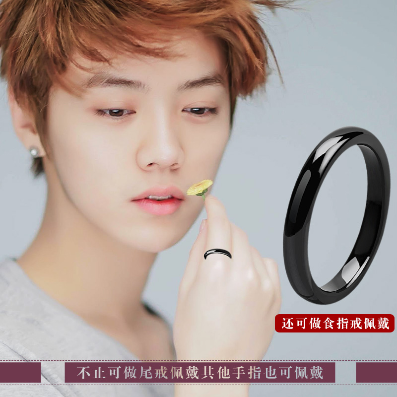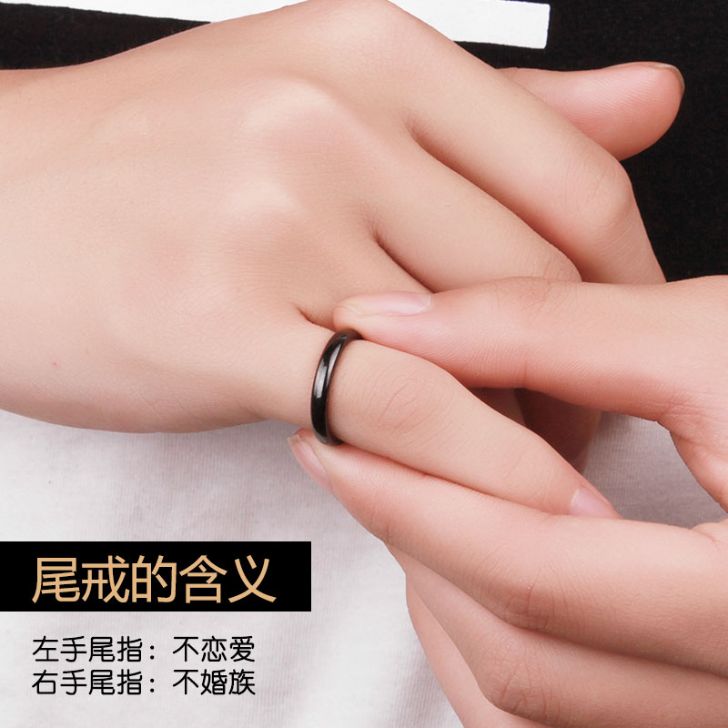 Black ceramic men's tail ring Japanese and Korean version of the little finger single ring personality trendy men's ring ring jewelry