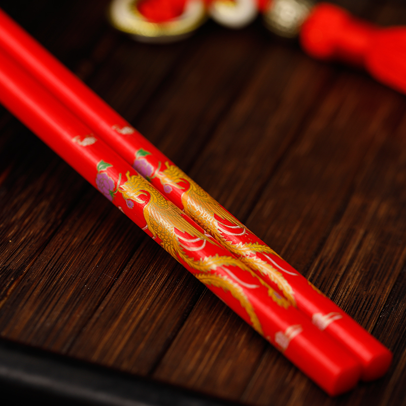 Wedding Celebration Items Wedding Dragon Phoenix Double Happy Words Chopsticks Wedding Banquet props Creative Red Festive Newcomer Little Gifts-Taobao