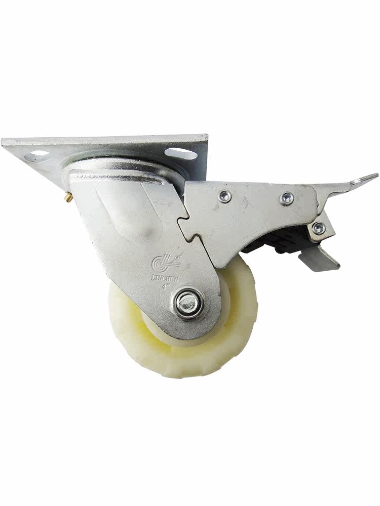 Shanghai Linchun heavy-duty nylon MC swivel caster anti-chemical wear-resistant wheel load 260kg 4 inch full brake wheel