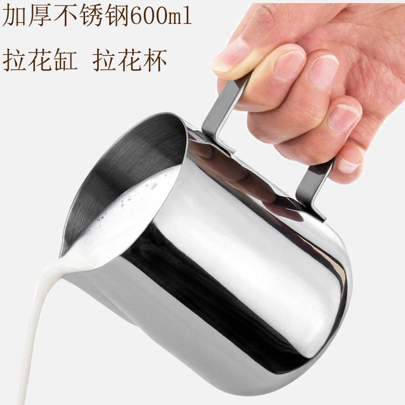 Thickened 304 stainless steel 600ml sharp-billed laflower cup pull-flower pot pull-in-cylinder steel cup floral coffee appliance
