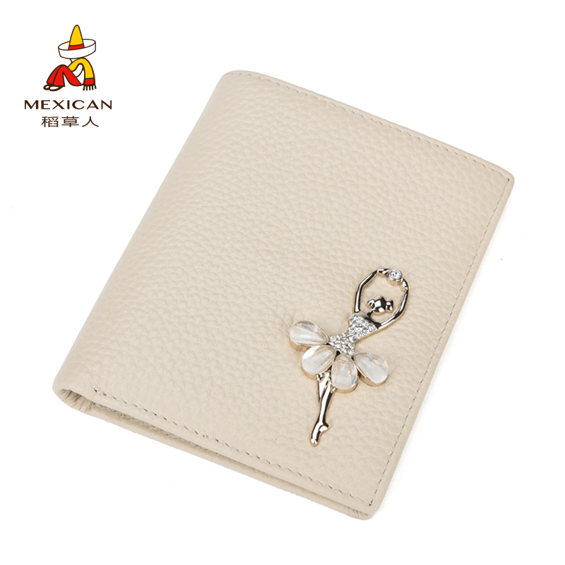 Scarecrow women's wallet short leather student Korean version cute 2 fold first layer cowhide student small wallet simple