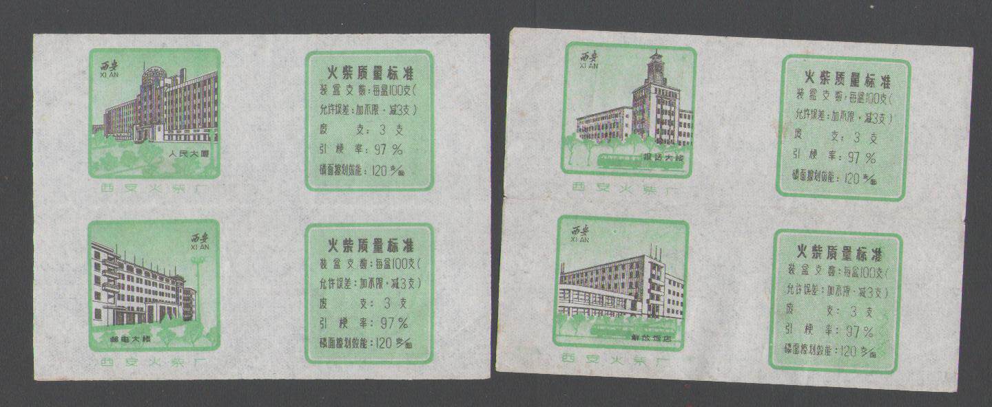 Old Matches Trademark Spark culture Collection Local Xi'an Fire Chai Factory Construction Volume Label 3 Color 4 All 19 #