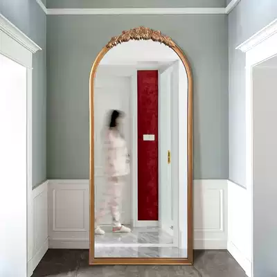Retro full-length mirror carved European-style full-length mirror French floor-to-ceiling mirror Porch wall-mounted full-length mirror Coat rack Household