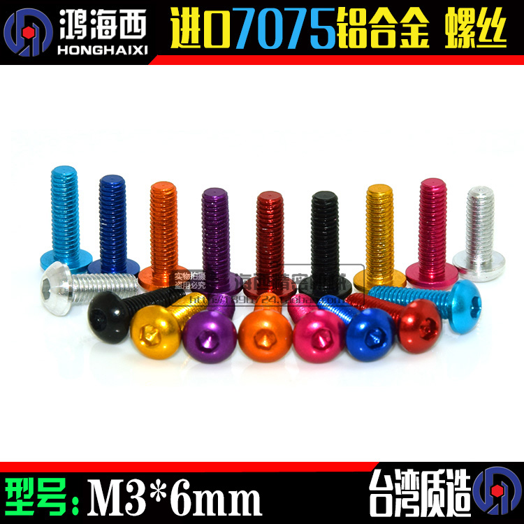 M3 * 6 positive large out of Taiwan imports 7075 plus hard CNC colorful aluminum alloy semi-circle head inner hexagonal screw