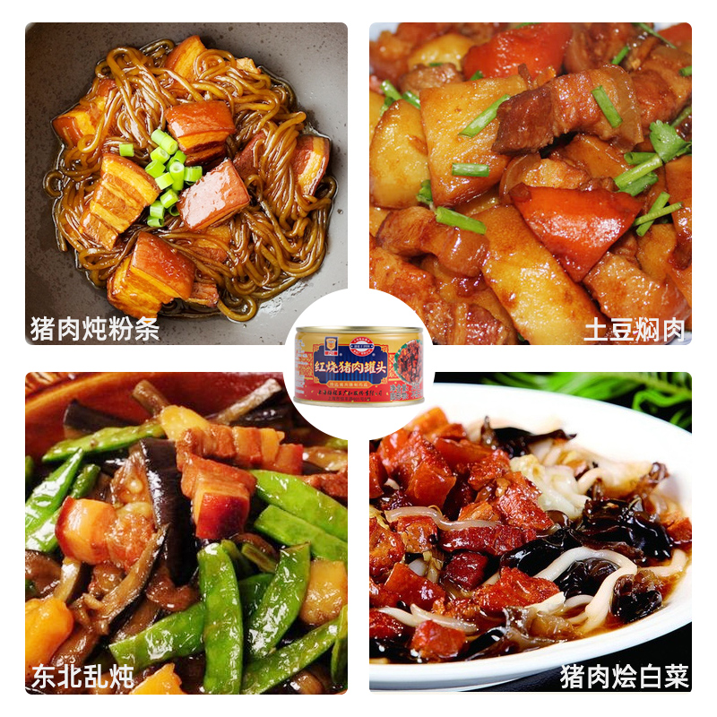 Shanghai Melin Red Burned Pork Canned 340g*6 cans of meals cooked meals ready to eat red and burned meat