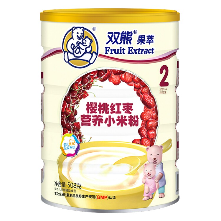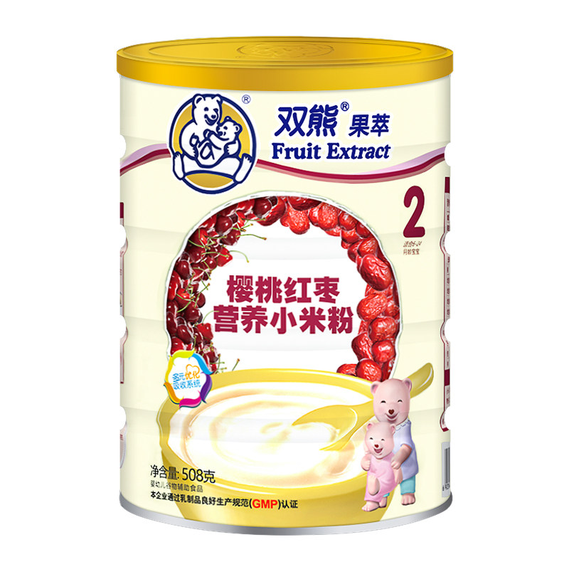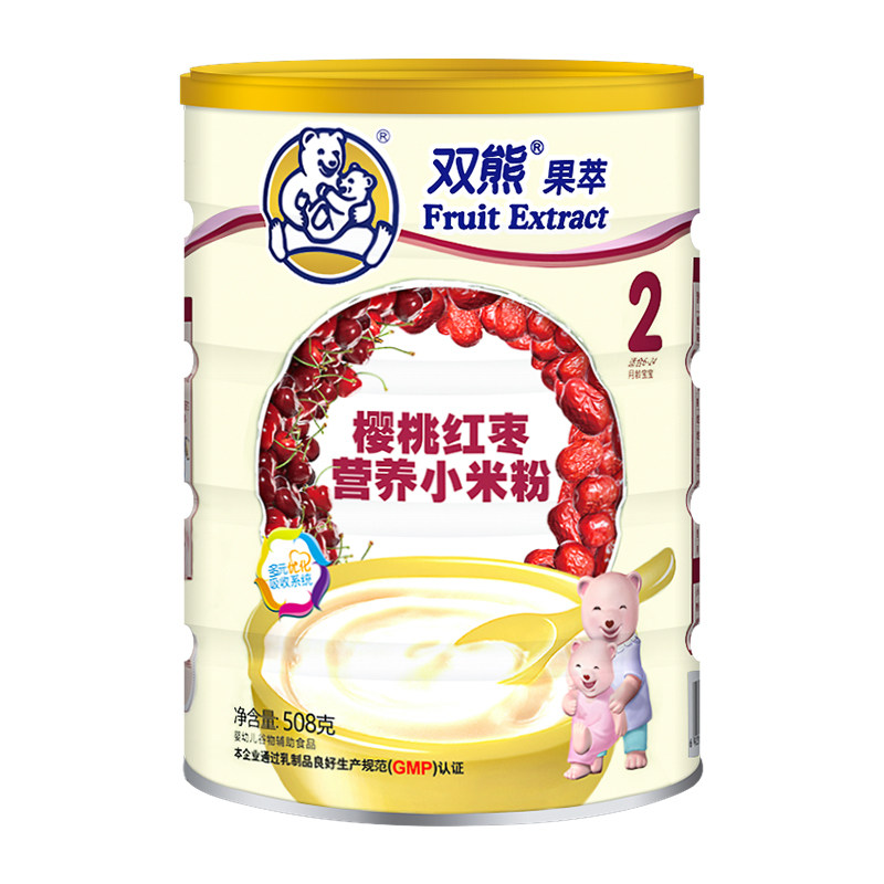 Double Bear Fruit Extraction Cherry Red Date Nutrition Small Rice Flour infant sub-food rice burnt 2 paragraphs 6-24 months 508g canned