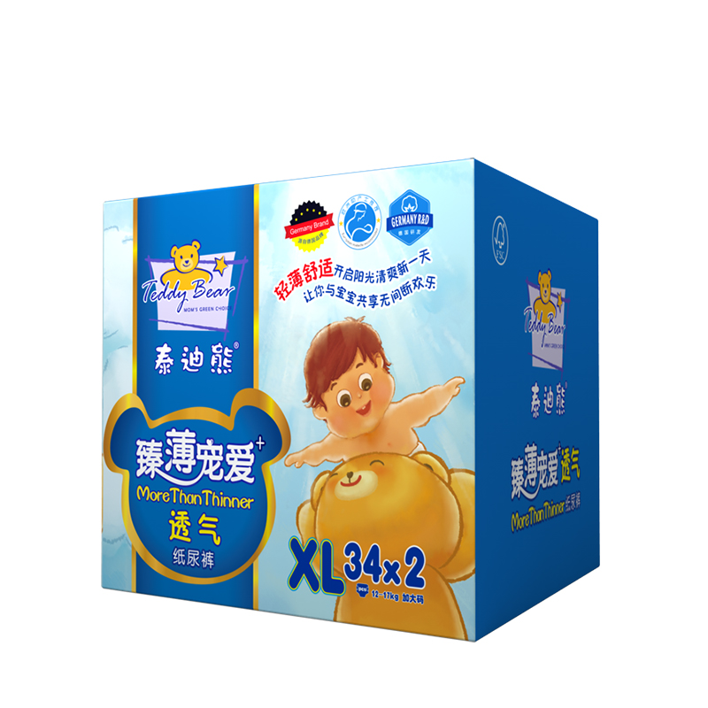 Teddy Bears Thin to Pee No Wet XL Code 68 Baby light and breathable Dry paper Diaper Summer Ultra Slim Pants