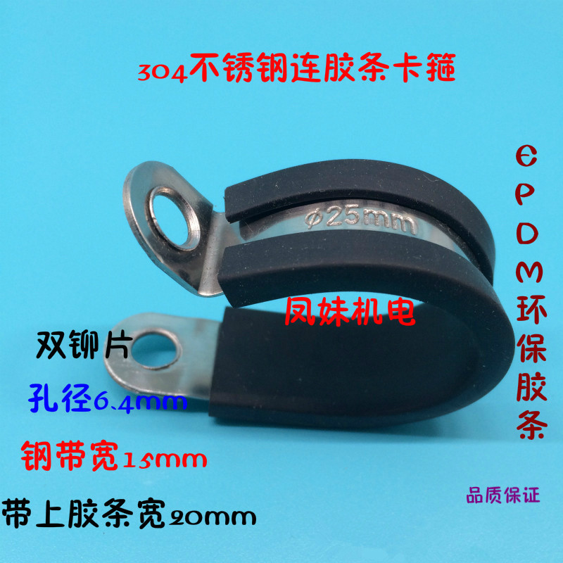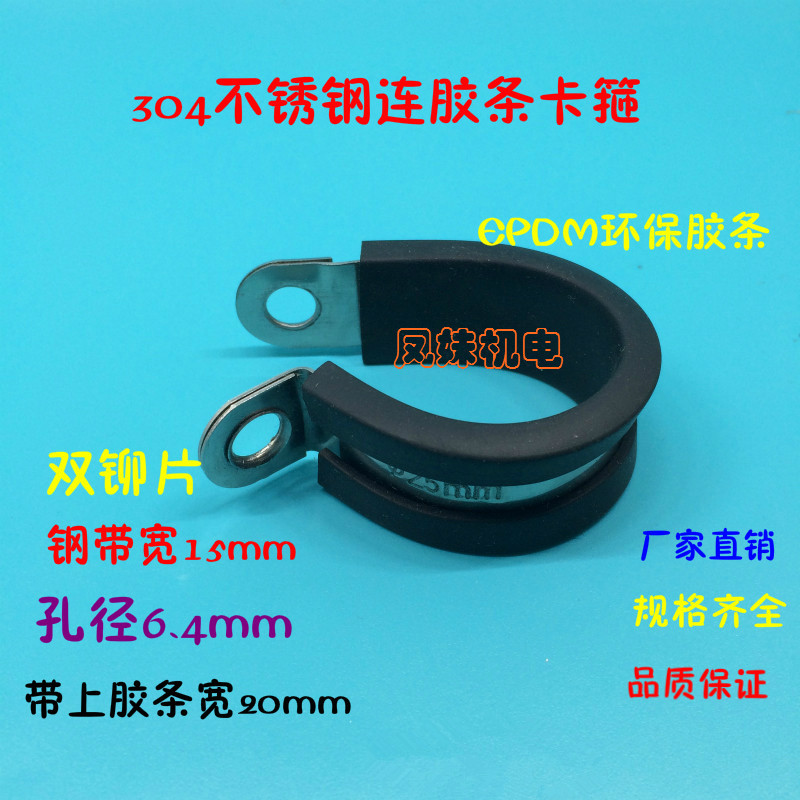 Stainless steel 304 with rubber strip clamp stainless steel clamp R-type pipe clamp wire fixing clamp rubber shock-absorbing clamp