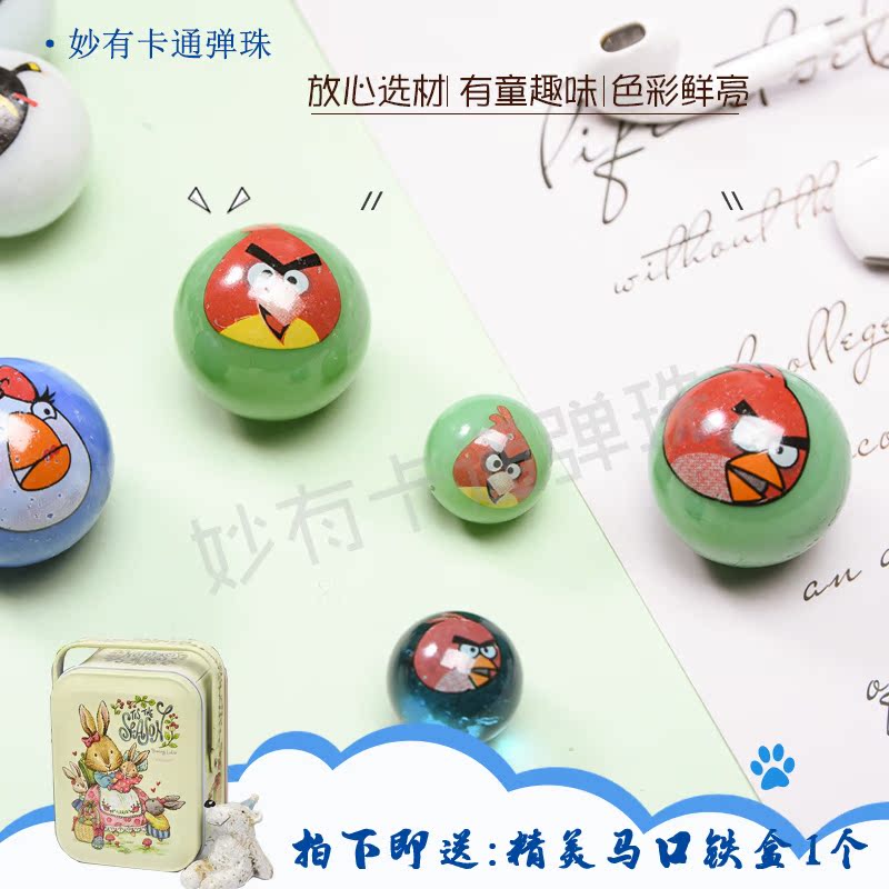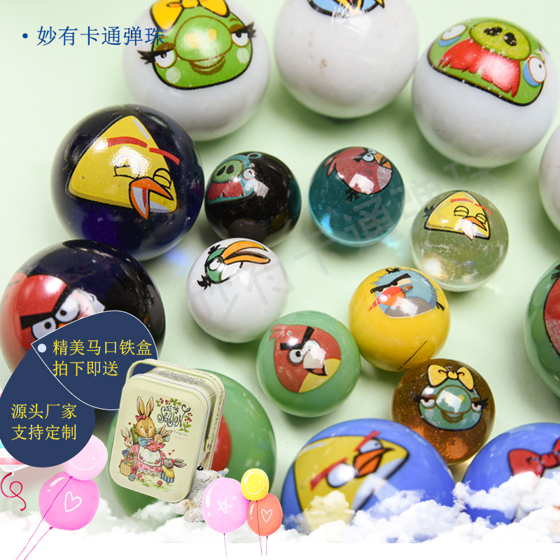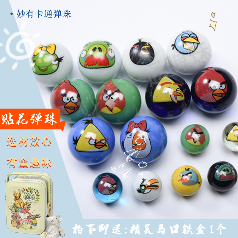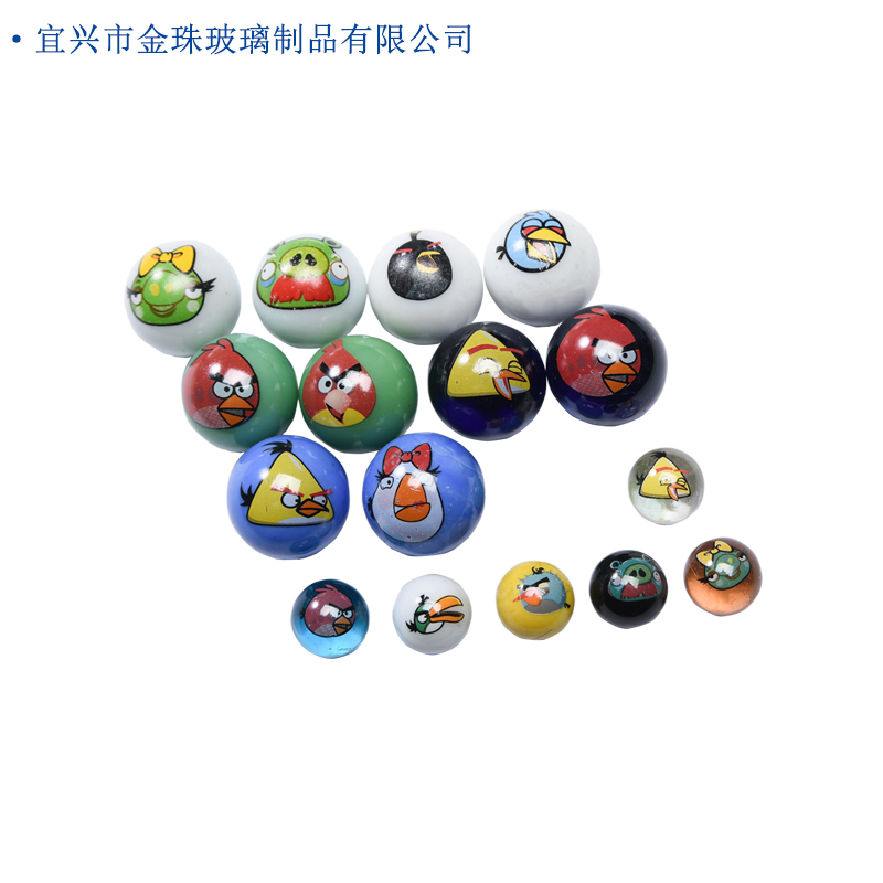 Exclusive cartoon little bird glass ball marbles 25mm set of 10 different patterns customized with foreign trade outlet tails