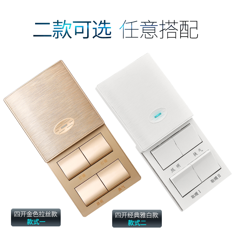 Yuba switch 86 type four-open slide universal with lid Bathroom switch powder room waterproof 16A panel Champagne gold