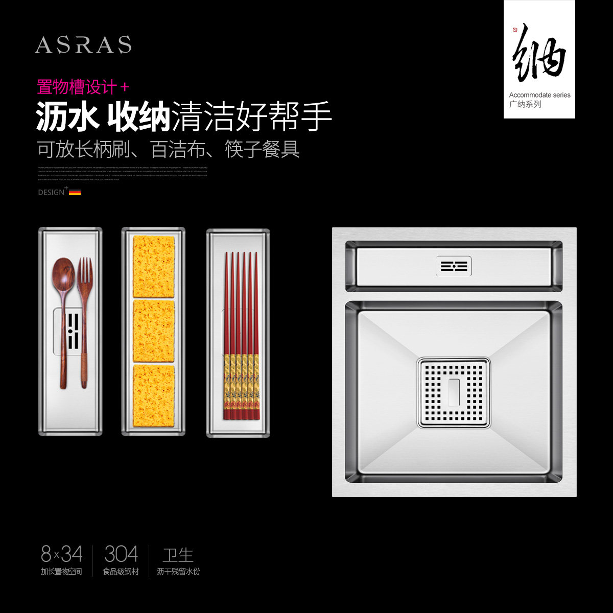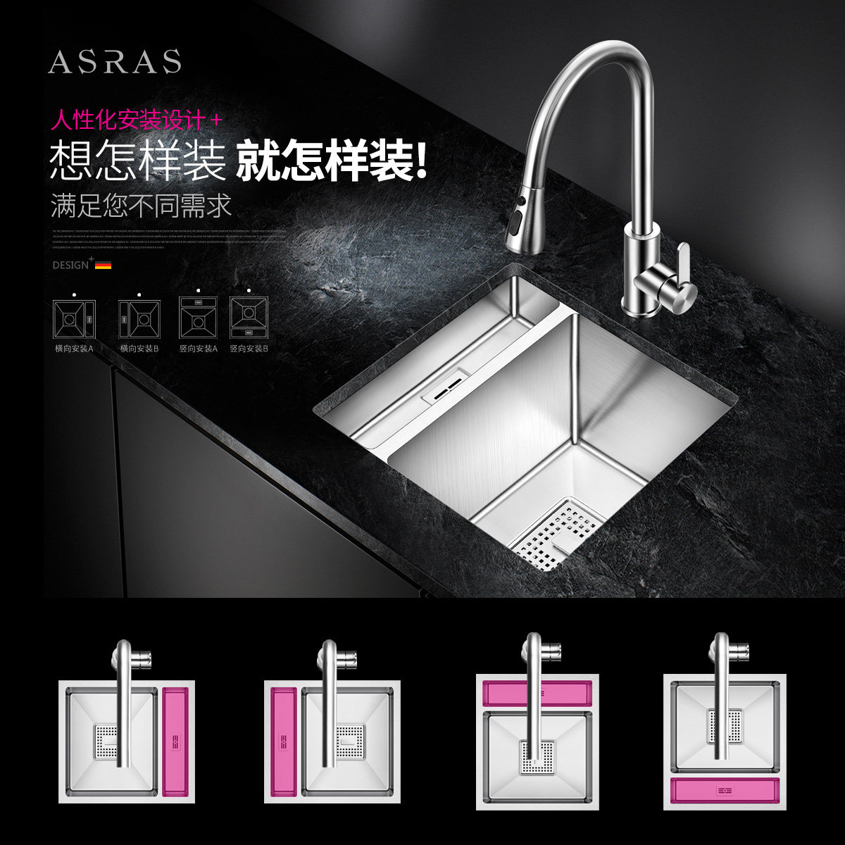 Assas 304 stainless steel manual sink Single sink vegetable wash basin pantry pool bar Nakajima balcony small tank