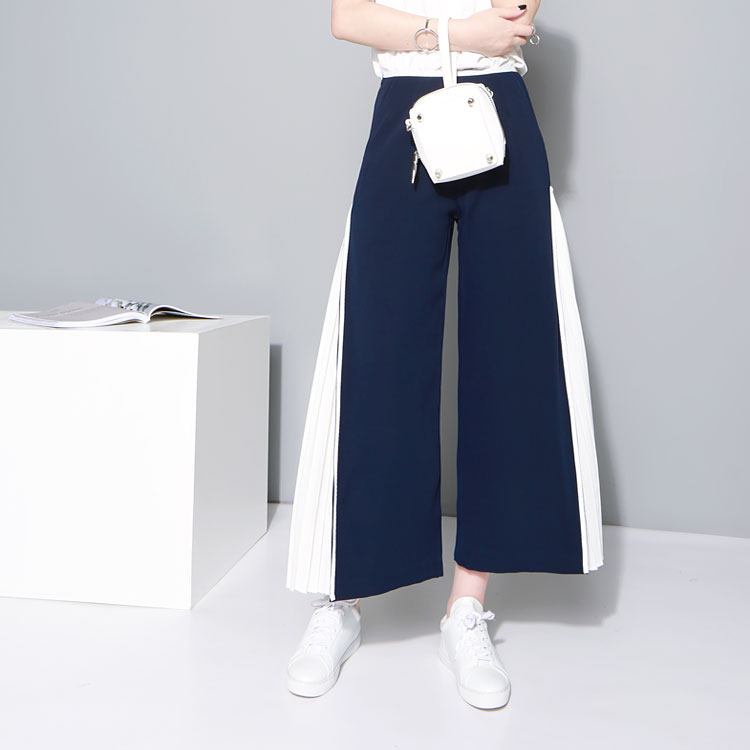 michicat2022 European And European Wind Unique Splicing Collision Color 100 Plexue Snowspun Broadlegged Pants Skirt Pants Women 90% Pants Casual