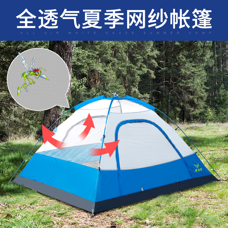 Camping Tent Outdoor 3-4 People Family 2 People Net Yarn Two Rooms A Hall Breathable Wild Camping Shed Weatherproof