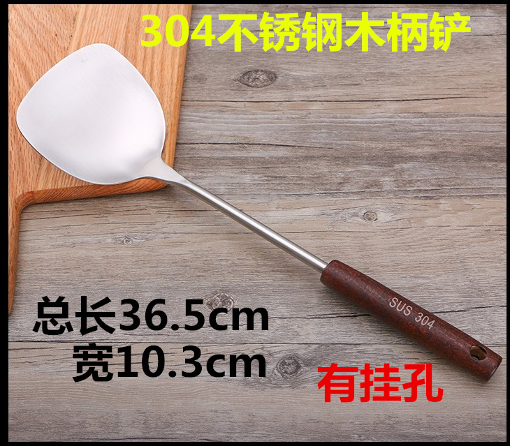 3#小号铲38cm(suitable for home) home lengthened anti-scalding shovel (304 steel with hanging hole) stainless steel rubber wood handle shovel (home with hanging hole) home boutique stainless steel shovel (with hanging hole) medium number