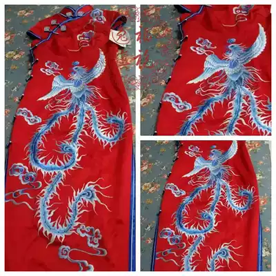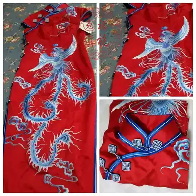 Yifu new silver phoenix embroidered Cheongsam skirt retro Chinese evening dress long version Big Red handmade custom